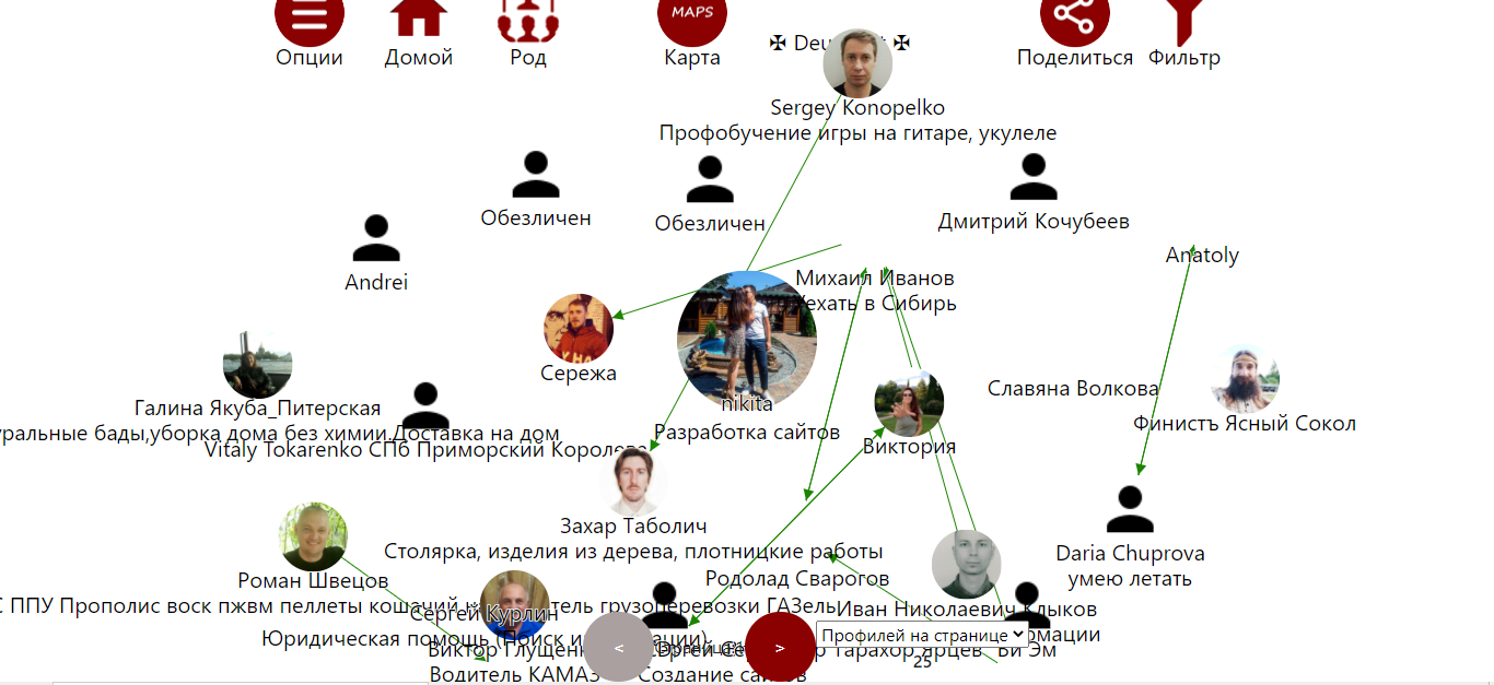 Профилей из чата на странице